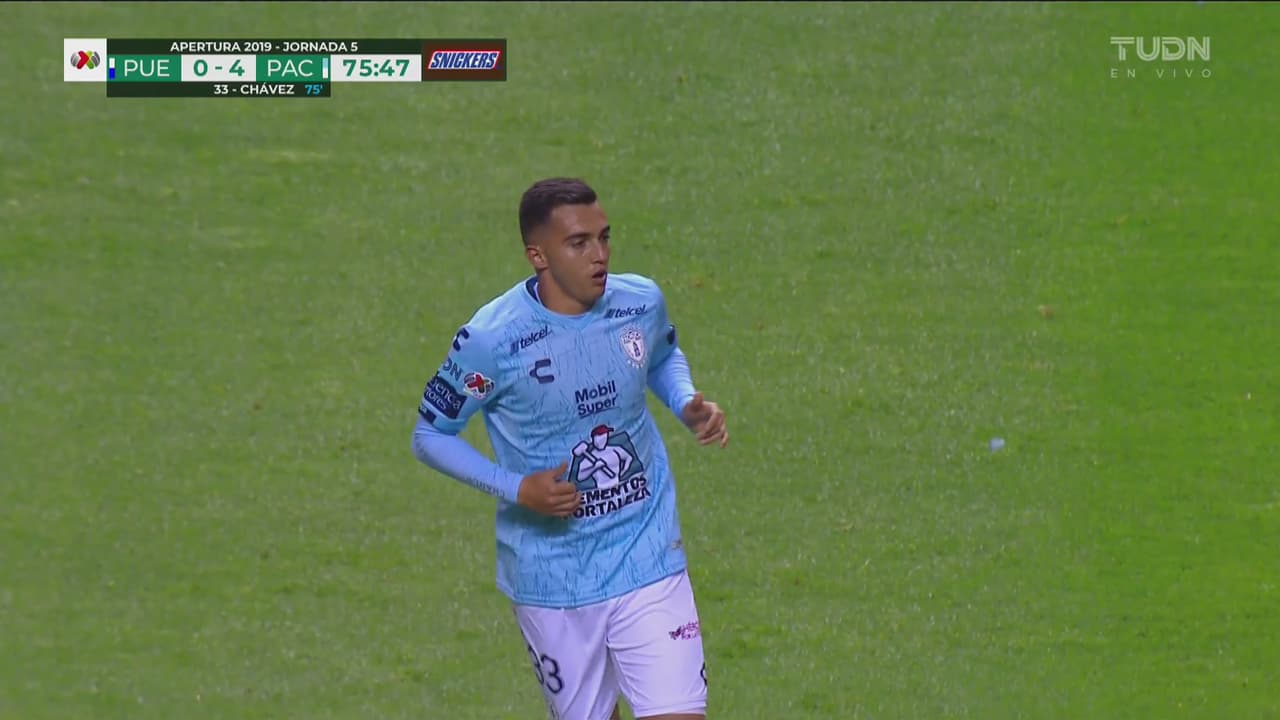 Con un zurdazo el mediocampista del Pachuca vence la estirada del arquero poblano para el cuarto gol del cuadro hidalguense