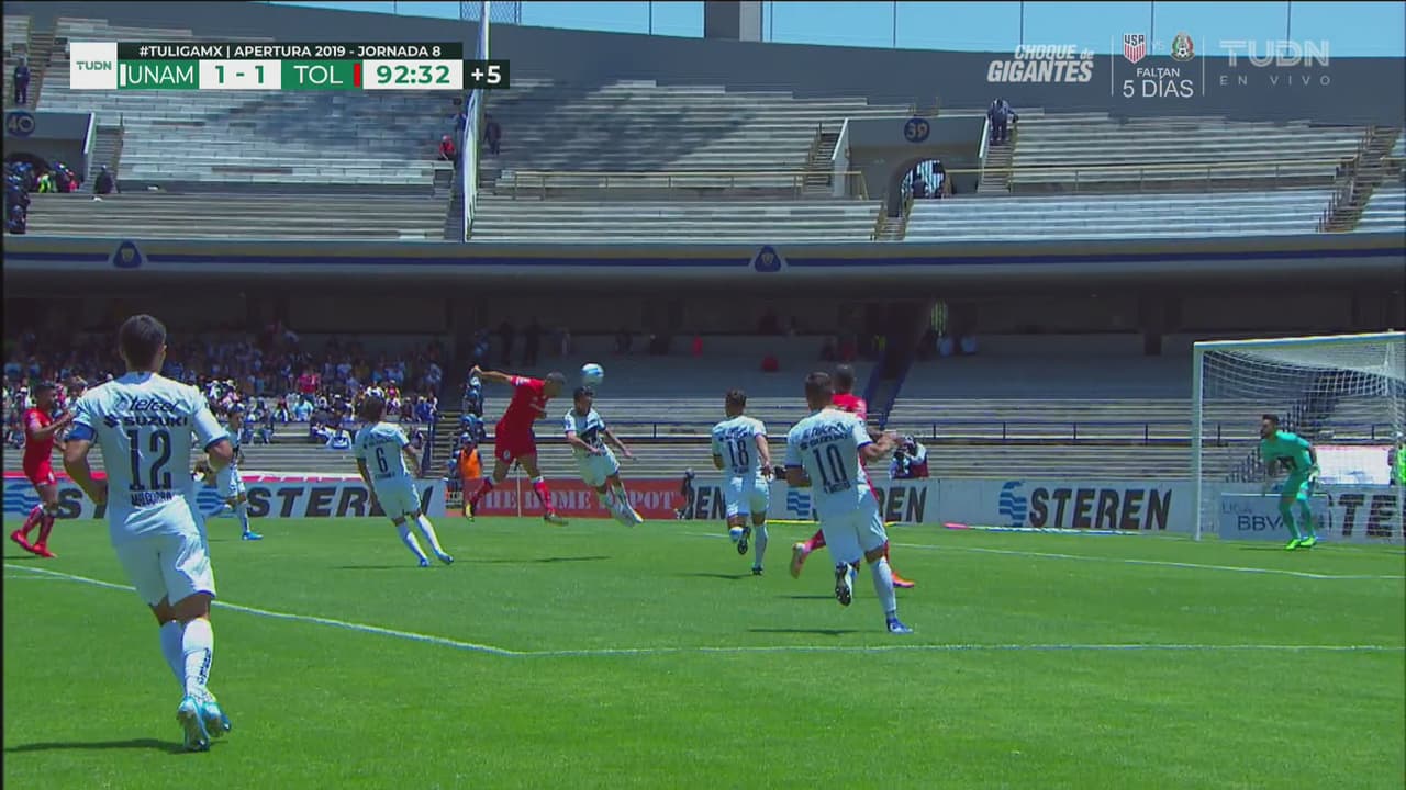 El delantero de Toluca igualó con un testarazo que no pudo atajar el portero de Pumas Alfredo Saldívar.