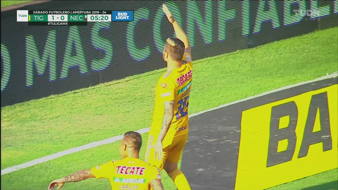 El delantero de Tigres cabeceó con relativa tranquilidad un servicio de Quiñones para el 1-0.
