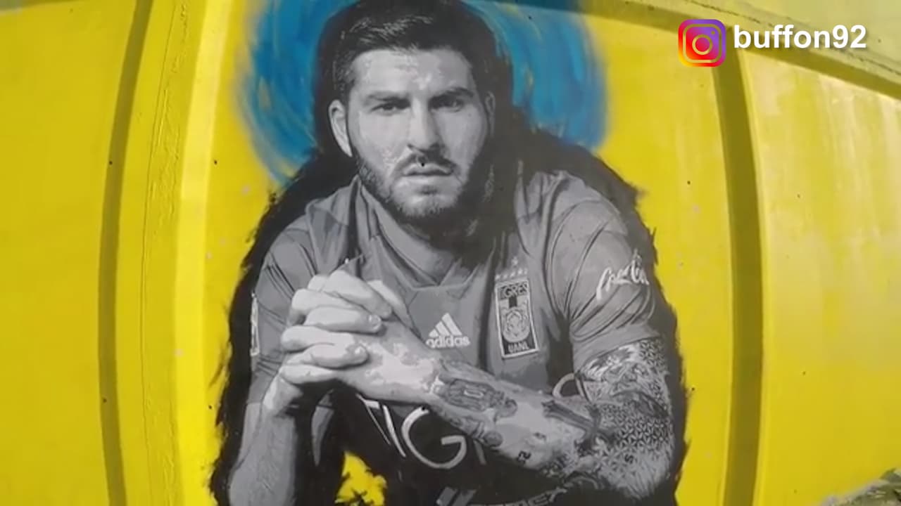 El artista, conocido en las redes sociales como ’Buffon’, compartió en su cuenta de Instagram el proceso de elaboración, en stencil, del rostro del delantero de Tigres con la camiseta auriazul. Aquí el arte.