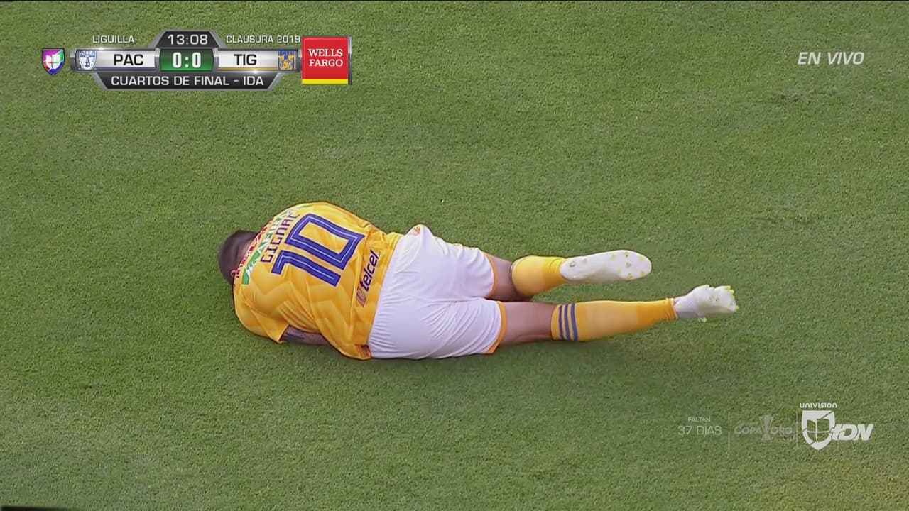 El crack de Tigres cayó mal luego de pelear una pelota con el volante del Pachuca al que el francés le reclamó por la jugada.