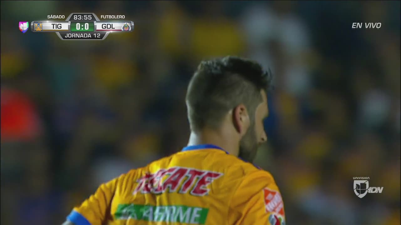 Tigres tomó mal parada la defensa tapatía y armaron un gran contragolpe que culminó con el atacante francés sacando un disparo que Rodolfo Cota logró detener.