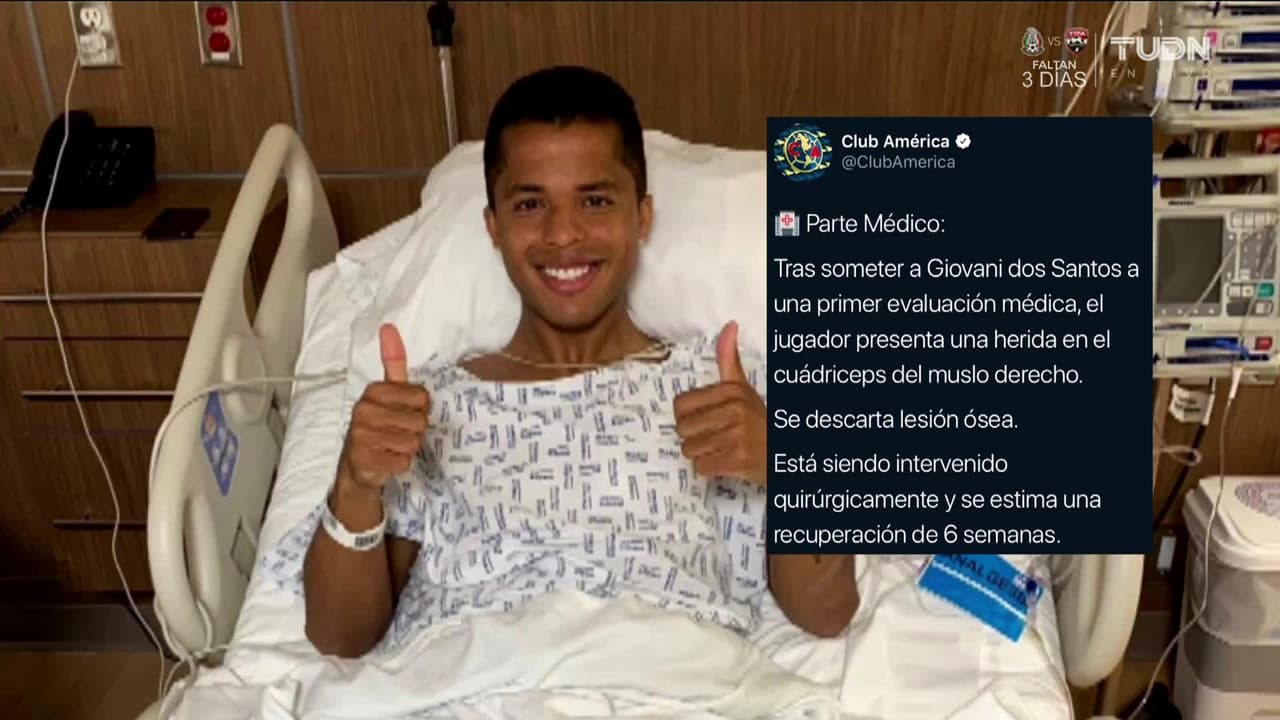 Giovani abandonó el Coloso de Santa Úrsula y fue llevado al hospital donde se descartó fractura alguna pero si daño en tejidos de la pierna derecha que hicieron que fuera operado por la noche y su regreso a las canchas será en seis semanas.