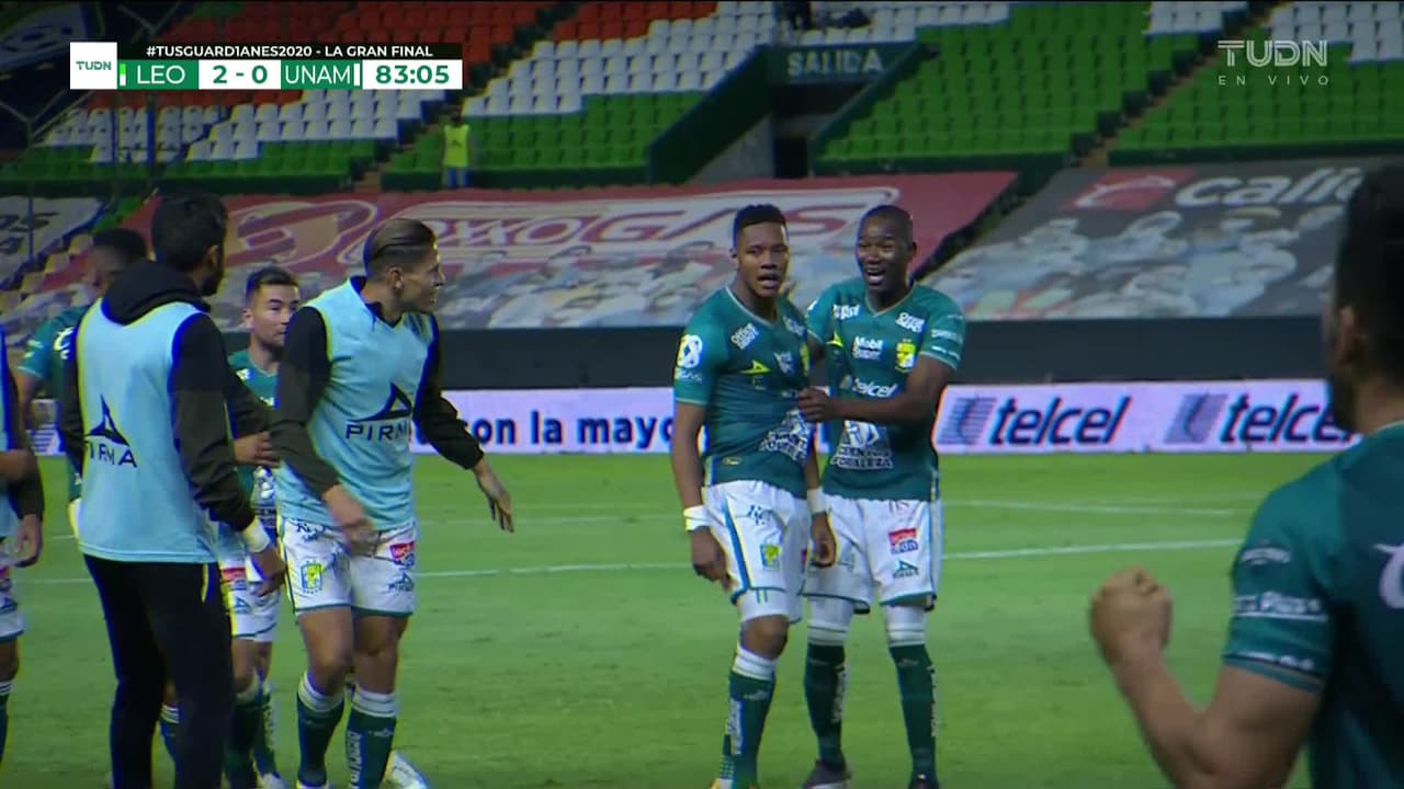 ¡Gol! León 2| Pumas UNAM 0. Yairo Moreno (León) Disparo con la derecha desde el centro del área.
