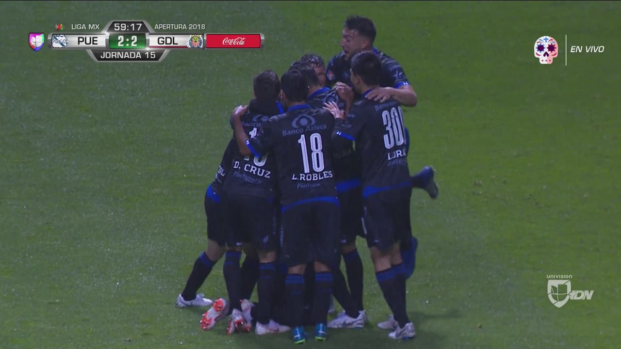 Perfecta ejecución del jugador de la Franja, que le pegó con fuerza y colocación para anotar el empate 2-2 ante Chivas.