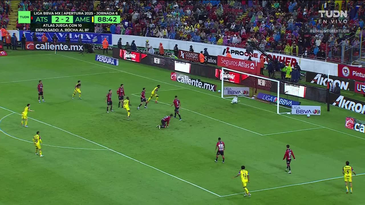 ¡Gol! Atlas 2| América 3. Allan Saint-Maximin (América) Disparo con la derecha desde el centro del área.