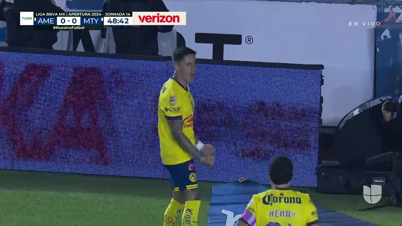 ¡Gol! América 1| Monterrey 0. Brian Rodríguez (América) zurdazo desde el lado izquierdo dentro del área.