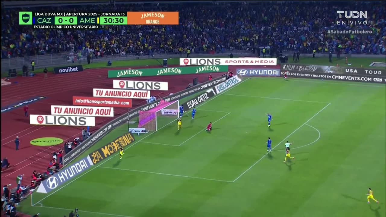 ¡Gol! Cruz Azul 0| América 1. Brian Rodríguez (América) Disparo con la derecha desde el centro del área.