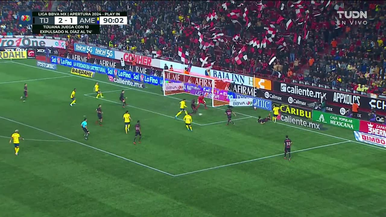 ¡Gol! Club Tijuana 2| América 2. Cristián Borja (América) Disparo con la derecha desde el centro del área.