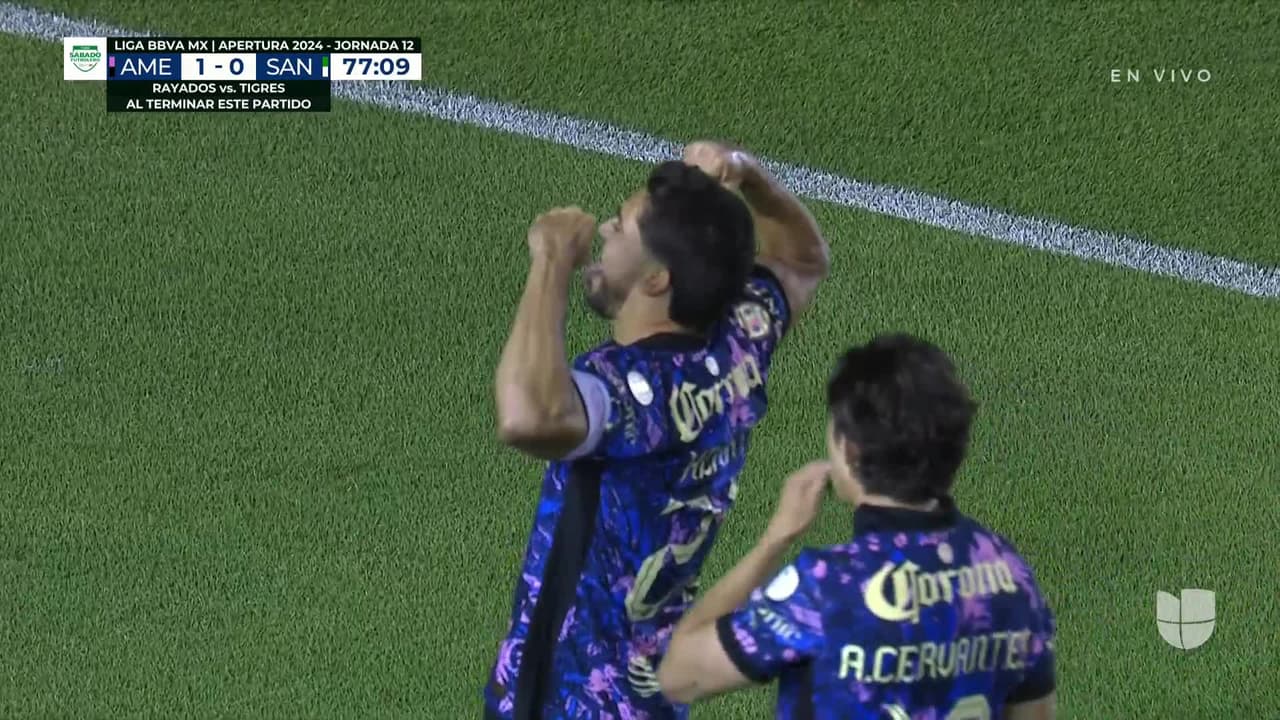 ¡Gol! América 1| Santos Laguna 0. Henry Martín (América) disparo de cabeza desde muy cerca.