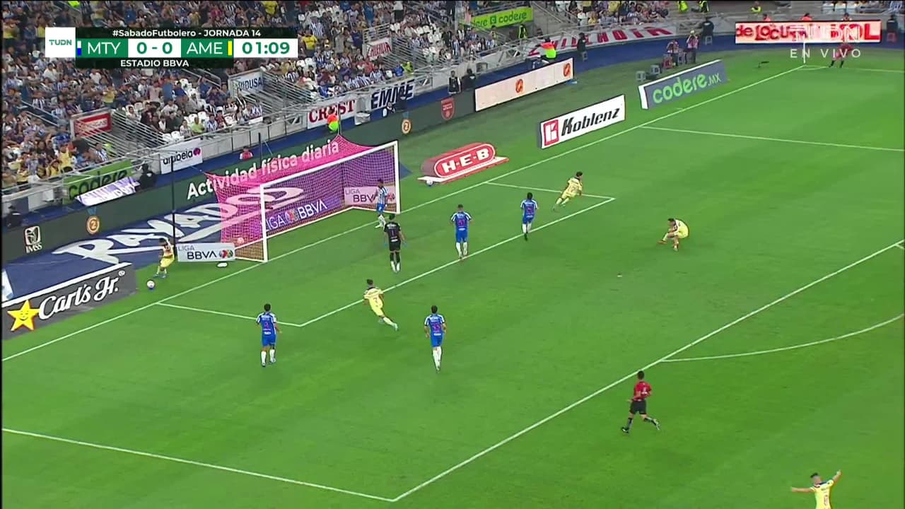 ¡Gol! Monterrey 0| América 1. Jonathan Rodríguez (América) zurdazo desde el centro del área.