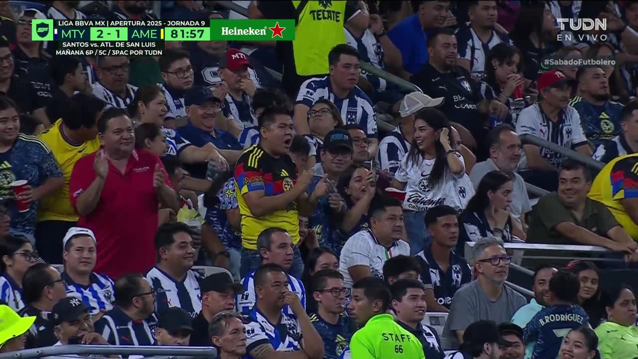 ¡Gol! Monterrey 2| América 1. Rodrigo Aguirre (América) zurdazo desde el centro del área.