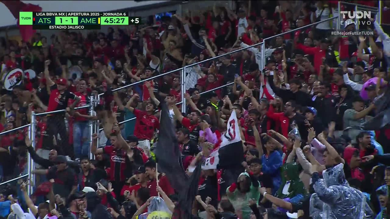 ¡Gol! Atlas 1| América 1. Gustavo del Prete (Atlas) Disparo con la derecha desde fuera del área.