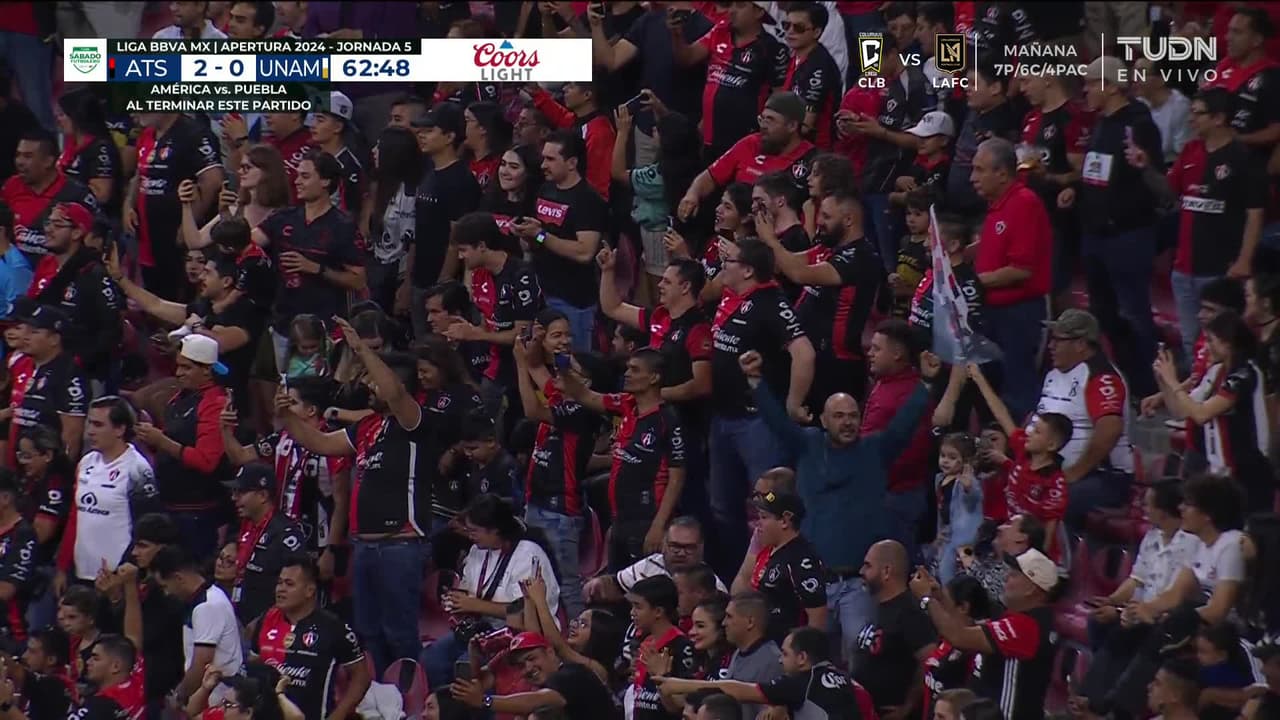 ¡Gol! Atlas 2| Pumas UNAM 0. Jhon Murillo (Atlas) Disparo con la derecha desde el centro del área.