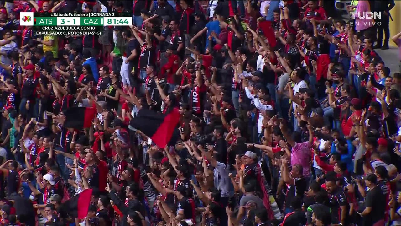 ¡Gol! Atlas 3| Cruz Azul 1. Julián Quiñones (Atlas) zurdazo desde el lado izquierdo dentro del área.