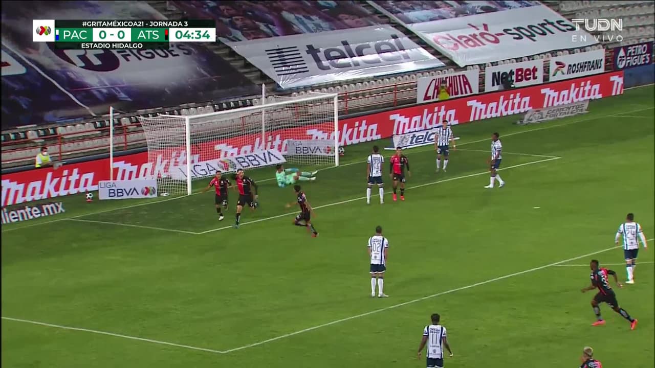 ¡Gol! Pachuca 0| Atlas 1. Julio Furch (Atlas) disparo de cabeza desde el centro del área disparo rastrero| junto al palo izquierdo. Asistencia de Luis Reyes con un centro al área.