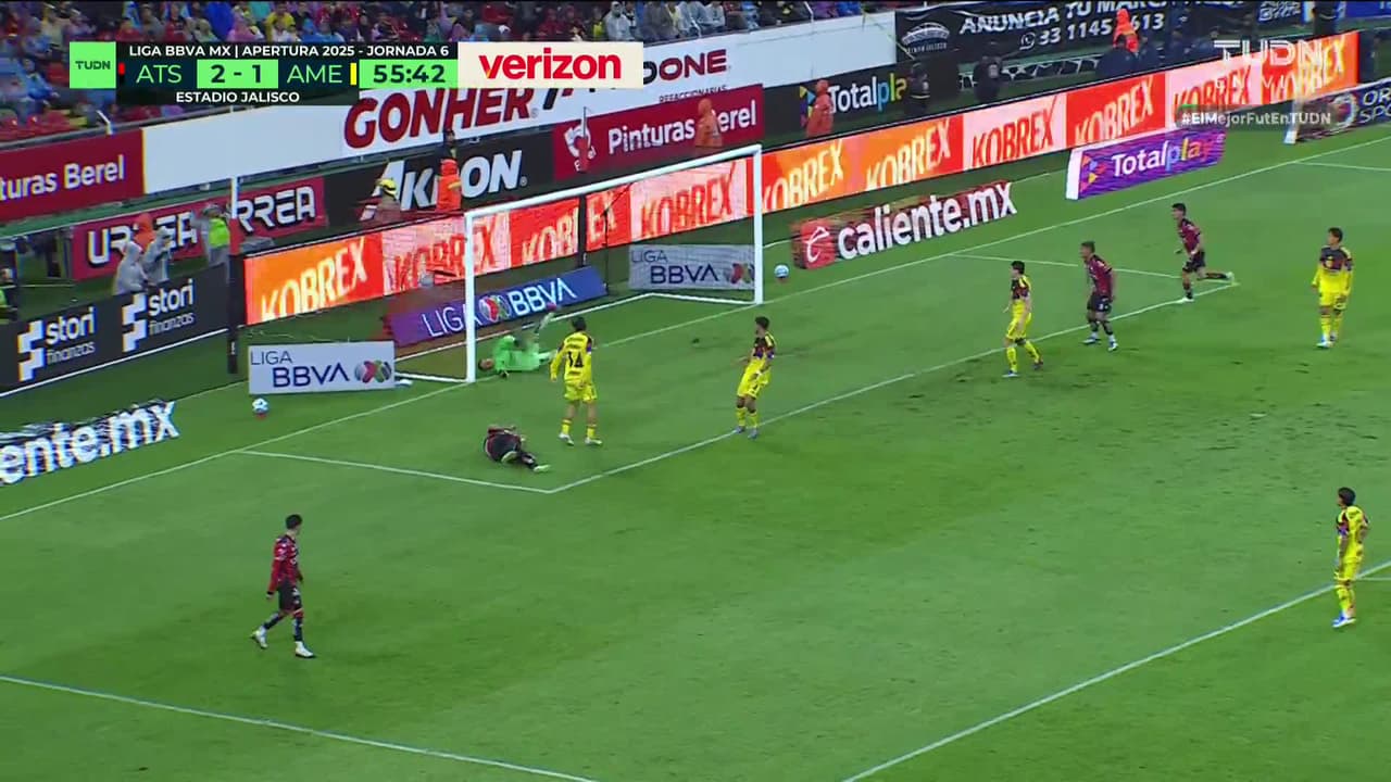 ¡Gol! Atlas 3| América 1. Uros Djurdjevic (Atlas) Disparo con la derecha desde el lado izquierdo dentro del área.