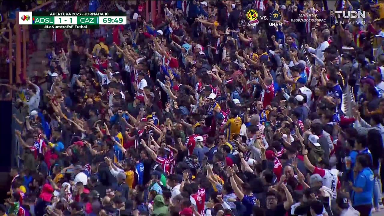 ¡Gol! Atlético San Luis 1| Cruz Azul 1. Dieter Villalpando (Atlético San Luis) Disparo con la derecha desde fuera del área.