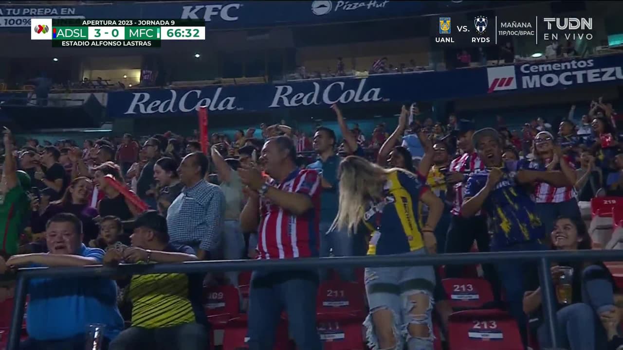 ¡Gol! Atlético San Luis 3| Mazatlán FC 0. Vitinho (Atlético San Luis) zurdazo desde muy cerca al centro de la portería. Asistencia de Jürgen Damm con un centro al área.