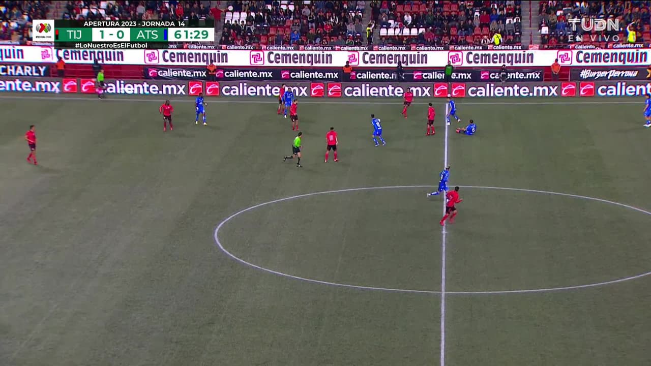¡Gol! Club Tijuana 2| Atlas 0. Kevin Castañeda (Club Tijuana) Disparo con la derecha desde fuera del área.
