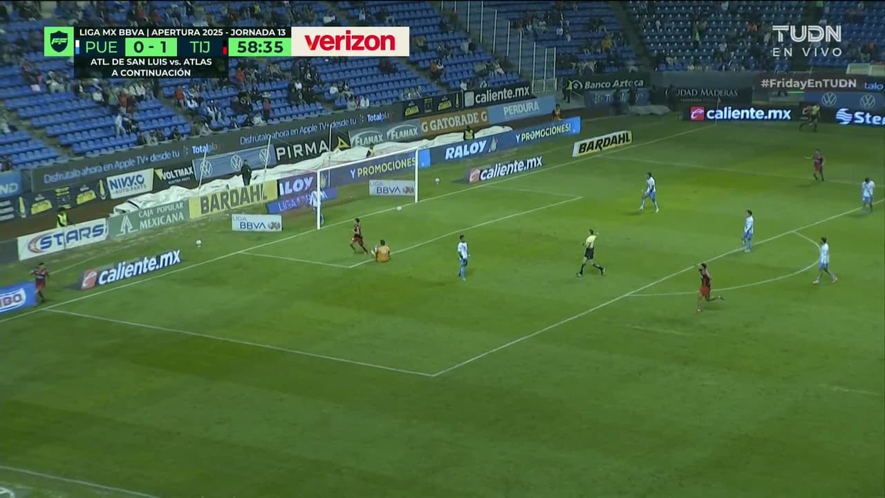 ¡Gol! Puebla 0| Club Tijuana 2. Kevin Castañeda (Club Tijuana) Disparo con la derecha desde el centro del área.