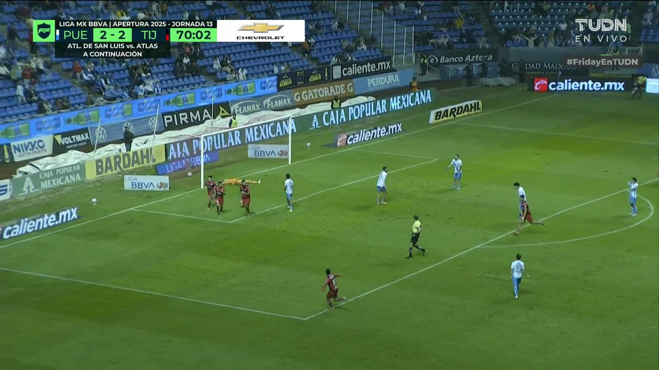 ¡Gol! Puebla 2| Club Tijuana 3. Mourad El Ghezouani (Club Tijuana) Disparo con la derecha desde el centro del área.