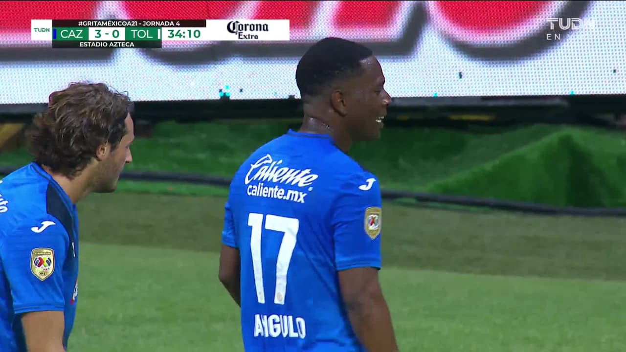 ¡Gol! Cruz Azul 3| Toluca 0. Bryan Angulo (Cruz Azul) Disparo con la derecha desde el centro del área tras un contragolpe.