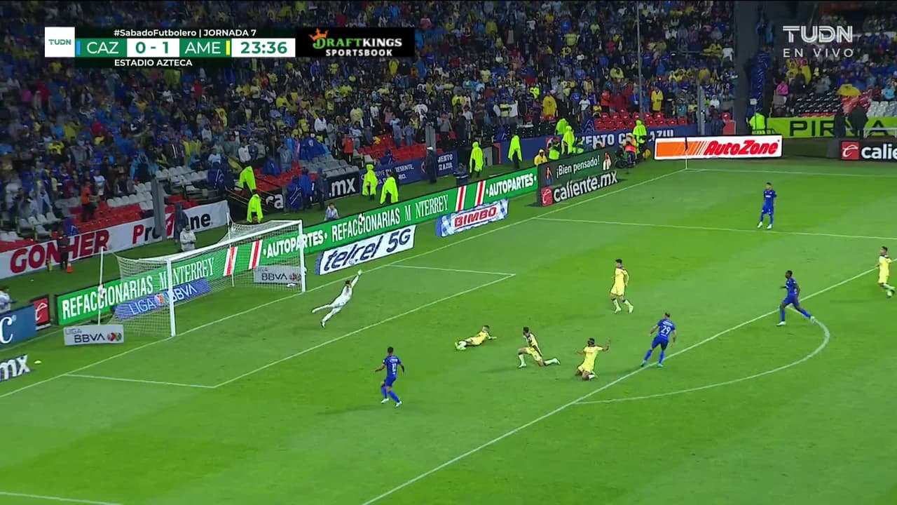 ¡Gol! Cruz Azul 1| América 1. Carlos Rotondi (Cruz Azul) zurdazo desde fuera del área.