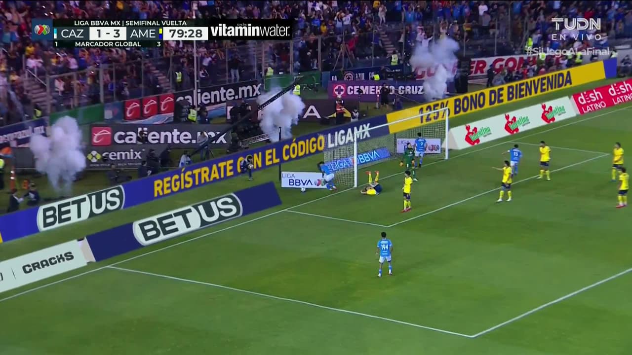 ¡Gol! Cruz Azul 2| América 3. Gabriel Fernández (Cruz Azul) disparo de cabeza desde muy cerca.