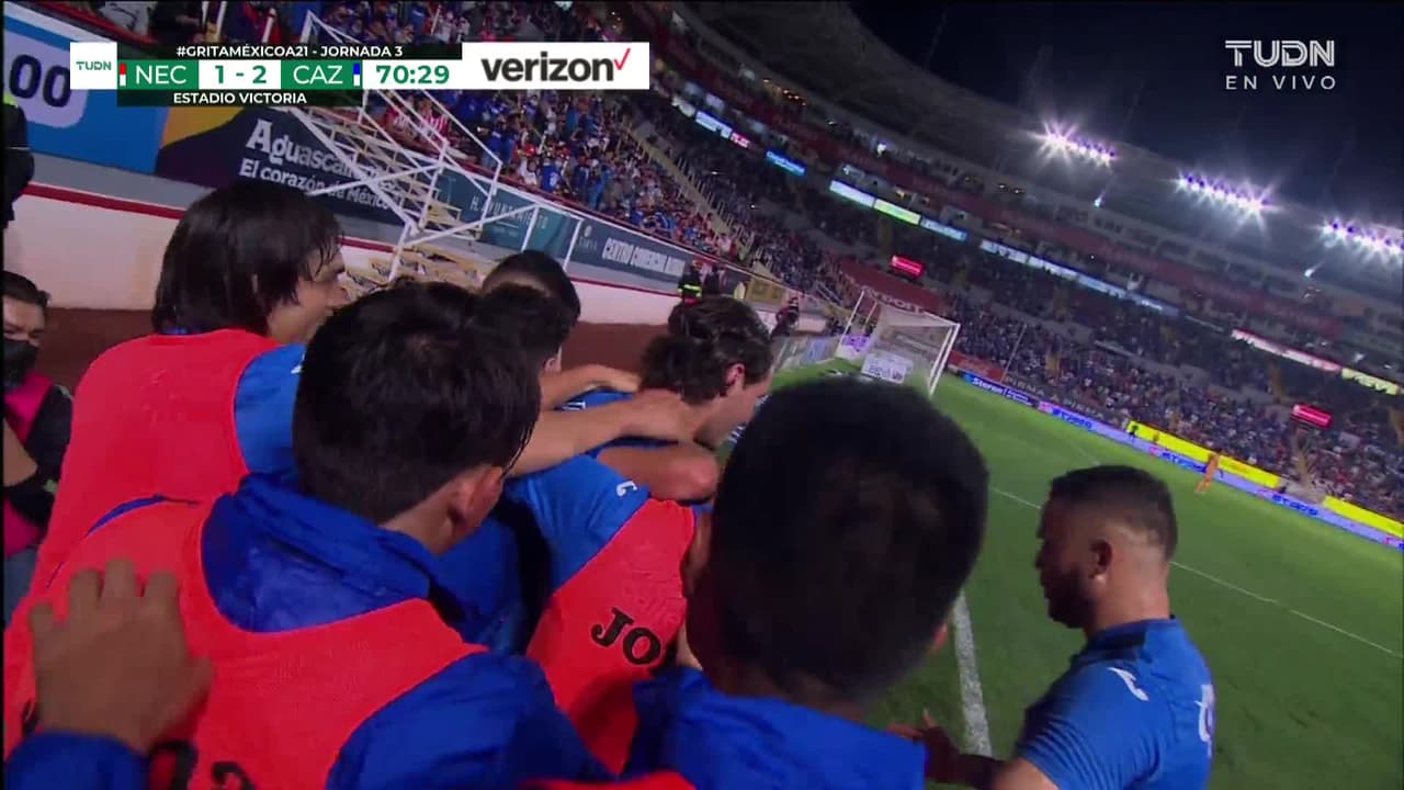 ¡Gol! Necaxa 1| Cruz Azul 2. Santiago Giménez (Cruz Azul) zurdazo desde el centro del área al centro de la portería. Asistencia de Orbelín Pineda.