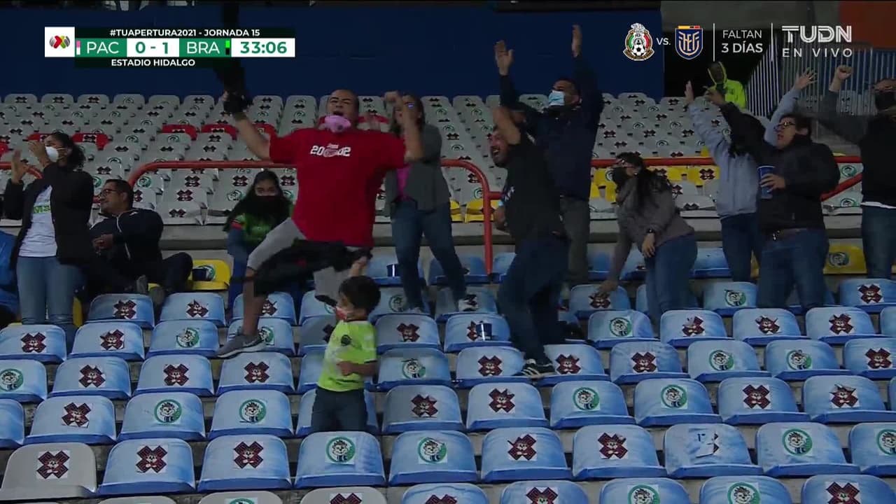¡Gol! Pachuca 0| FC Juárez 1. Pedro Raúl (FC Juárez) Disparo con la derecha desde el centro del área.