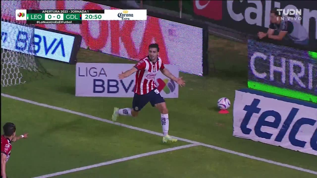 ¡Gol! León 0| Chivas 1. Antonio Briseño (Chivas ) Disparo con la derecha desde el centro del área tras un saque de esquina.