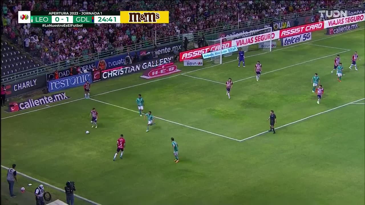 ¡Gol! León 1| Chivas 1. Alfonso Alvarado (León) disparo de cabeza desde el centro del área.
