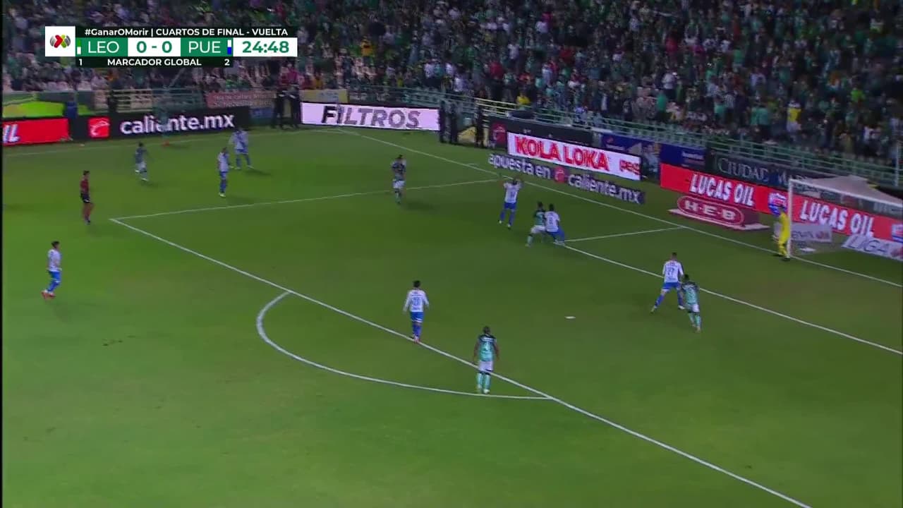 ¡Gol! León 1| Puebla 0. Ángel Mena (León) zurdazo desde el centro del área al centro de la portería. Asistencia de Víctor Dávila con un pase de cabeza.