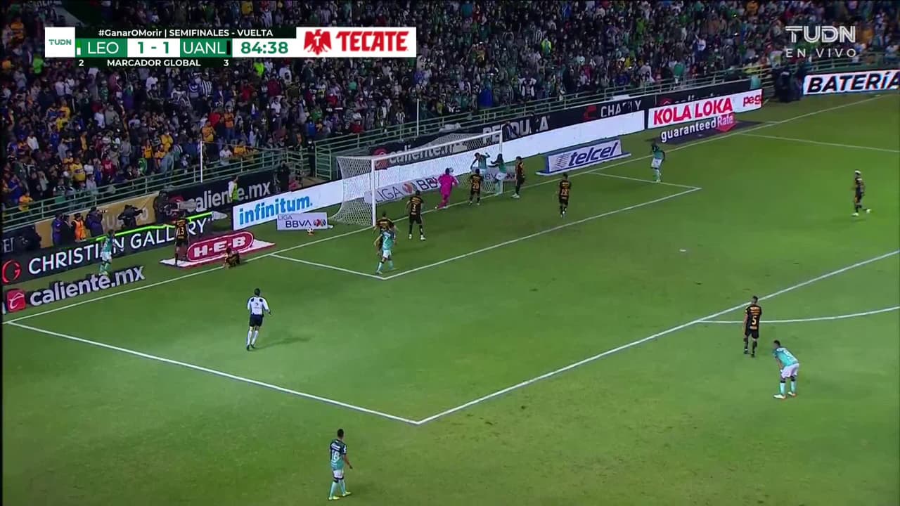 ¡Gol! León 2| Tigres 1. Ángel Mena (León) disparo de cabeza desde muy cerca al centro de la portería. Asistencia de Jean Meneses.