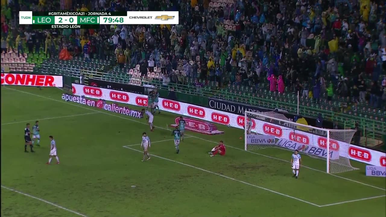 ¡Gol! León 3| Mazatlán FC 0. Emanuel Gigliotti (León) Disparo con la derecha a quemarropa desde el lado izquierdo.