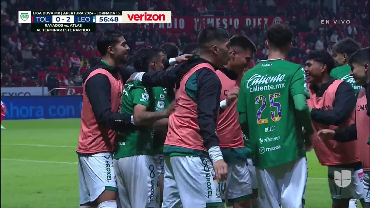 ¡Gol! Toluca 0| León 2. José Alvarado (León) Disparo con la derecha desde el centro del área tras un contragolpe.