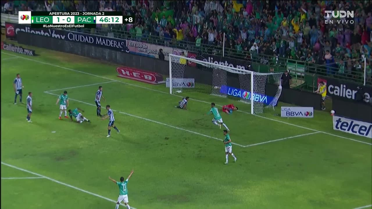 ¡Gol! León 2| Pachuca 0. Stiven Barreiro (León) disparo de cabeza desde el centro del área tras el cobro de una falta.