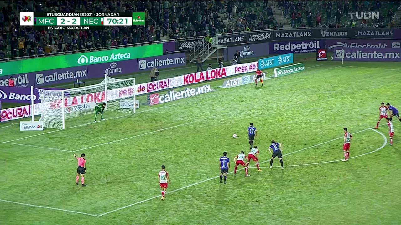 ¡Gol! Mazatlán FC 3| Necaxa 2. Camilo Sanvezzo (Mazatlán FC) convirtió el penalti Disparo con la derecha.