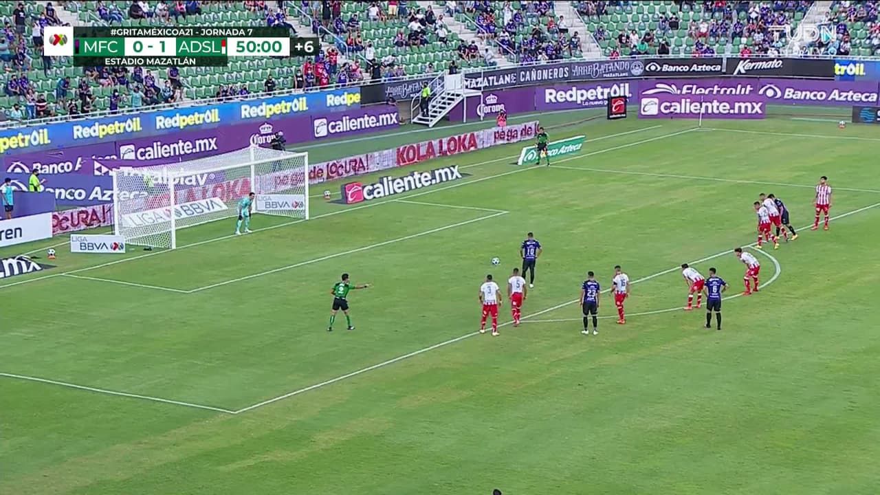 ¡Gol! Mazatlán FC 1| Atlético San Luis 1. Giovanni Augusto (Mazatlán FC) convirtió el penalti Disparo con la derecha por el lado derecho de la portería.