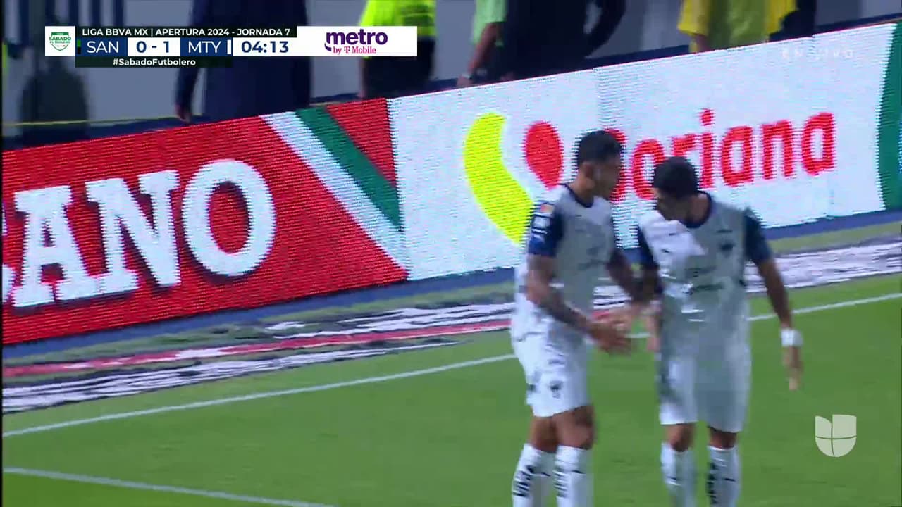 ¡Gol! Santos Laguna 0| Monterrey 1. Brandon Vazquez (Monterrey) Disparo con la derecha desde el centro del área.