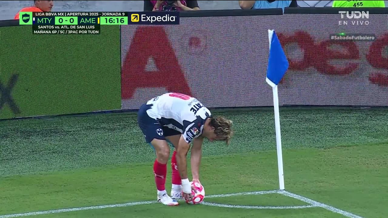 ¡Gol! Monterrey 1| América 0. Fidel Ambríz (Monterrey) Disparo con la derecha desde el centro del área tras un saque de esquina.