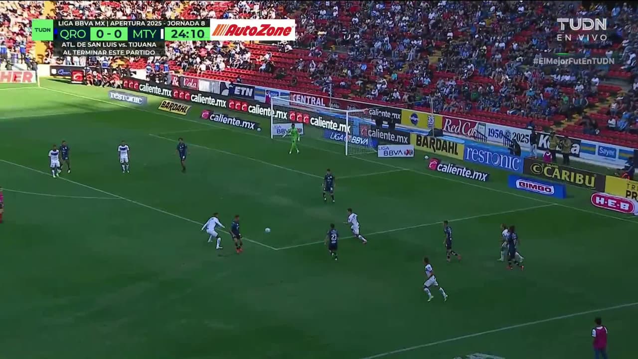¡Gol! Querétaro 0| Monterrey 1. Germán Berterame (Monterrey) Disparo con la derecha desde el centro del área.