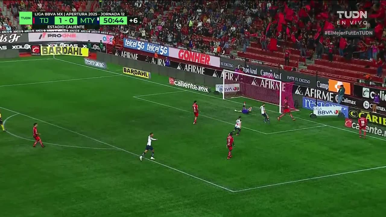 ¡Gol! Club Tijuana 1| Monterrey 1. Germán Berterame (Monterrey) Disparo con la derecha a quemarropa desde el lado derecho por el lado derecho de la portería. Asistencia de Óliver Torres.