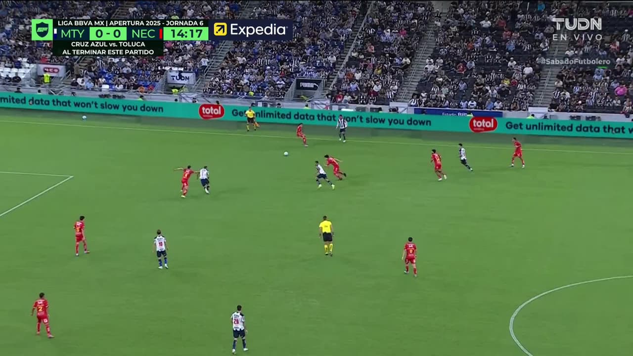 ¡Gol! Monterrey 1| Necaxa 0. Lucas Ocampos (Monterrey) Disparo con la derecha desde fuera del área.