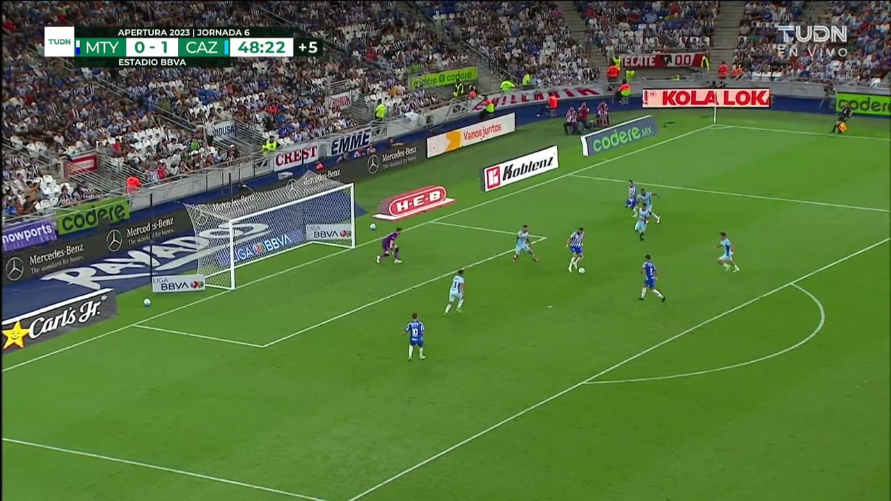 ¡Gol! Monterrey 1| Cruz Azul 1. Maximiliano Meza (Monterrey) Disparo con la derecha desde el centro del área disparo rastrero| junto al palo izquierdo. Asistencia de Rogelio Funes Mori.