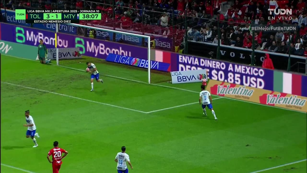 ¡Gol! Toluca 3| Monterrey 2. Óliver Torres (Monterrey) Disparo con la derecha desde el centro del área.