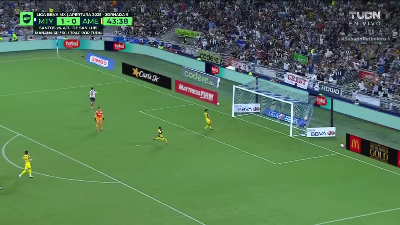 ¡Gol! Monterrey 2| América 0. Sergio Canales (Monterrey) zurdazo desde el centro del área.