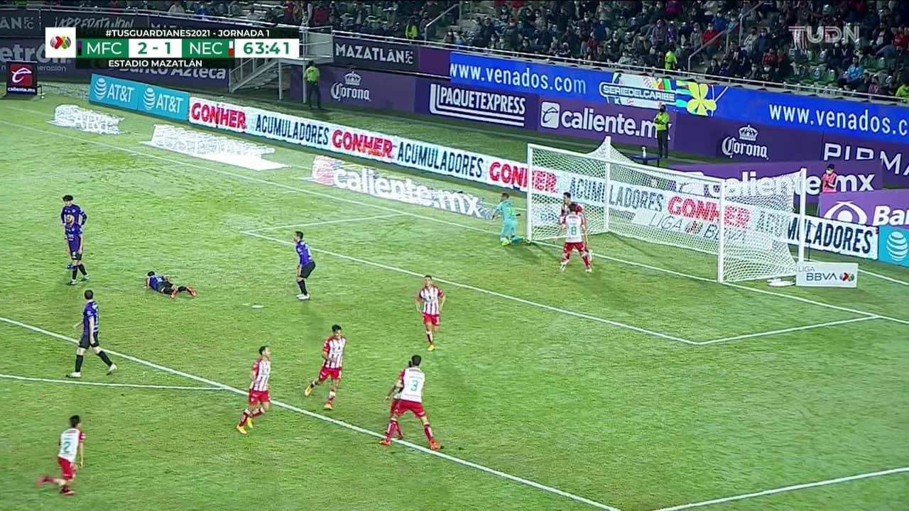 ¡Gol! Mazatlán FC 2| Necaxa 2. Alejandro Zendejas (Necaxa) zurdazo desde fuera del área disparo rastrero| junto al palo izquierdo tras el cobro de una falta.