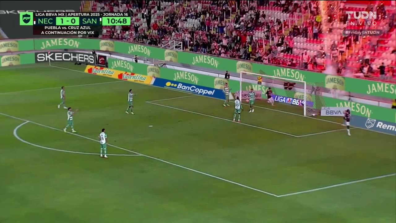 ¡Gol! Necaxa 2| Santos Laguna 0. Diber Cambindo (Necaxa) disparo de cabeza desde el centro del área.